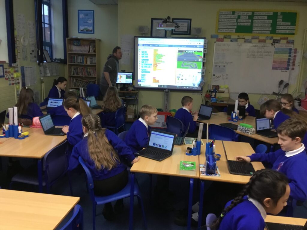 Class I: Technocamps Tue, 30th Jan 2024 Class I had another fantastic session from Will. They were creating their own game using coding. THANKS WILL
